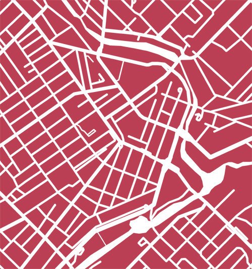 Map of Downtown Guelph, Ontario, Canada. Example colour shown is Tanzania Garnet.