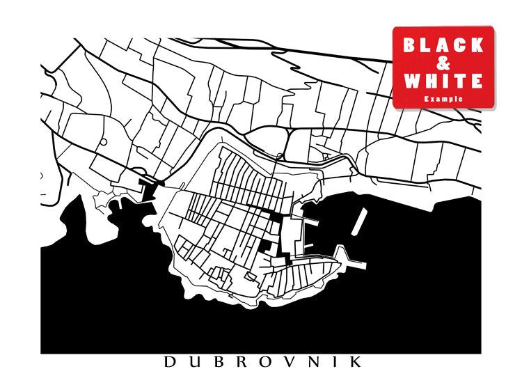 Map of Dubrovnik, Croatia. Example colour shown is Siena.
