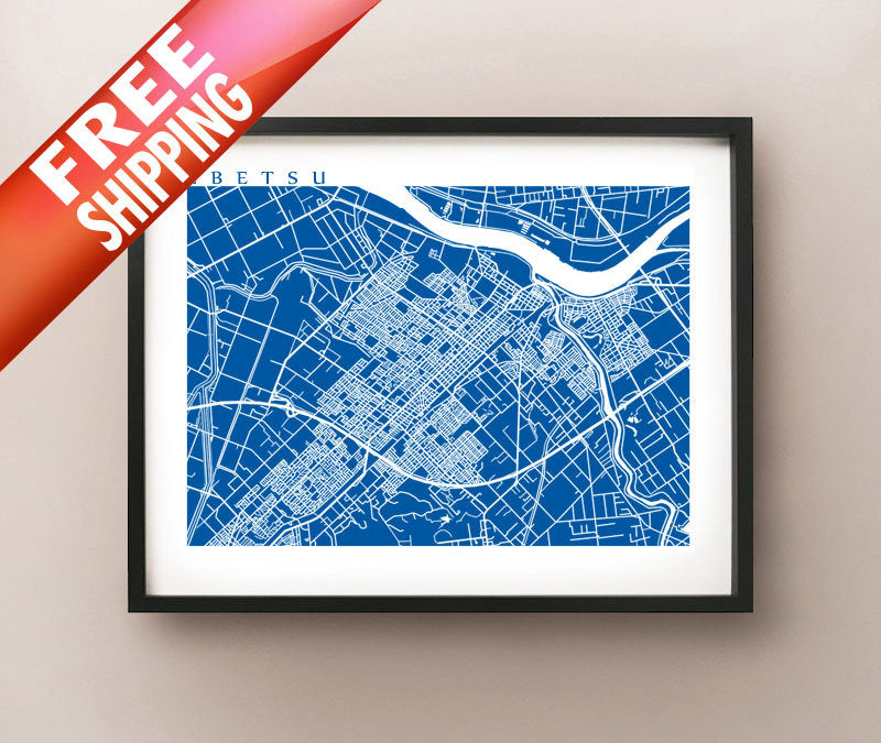 Map of Ebetsu, Japan. Example colour shown is Default Blue.