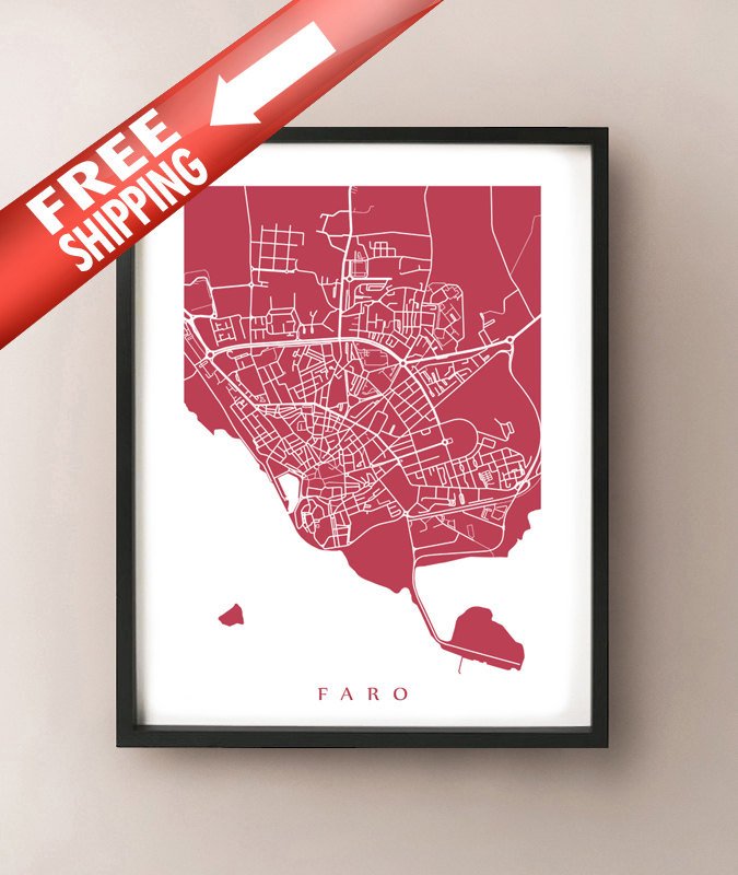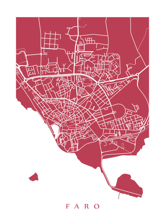 Map of Faro, Portugal. Example colour shown is Tanzania Garnet.