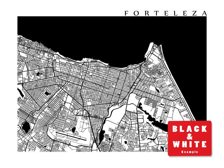 Map of Forteleza, Brazil. Example colour shown is Default Blue.