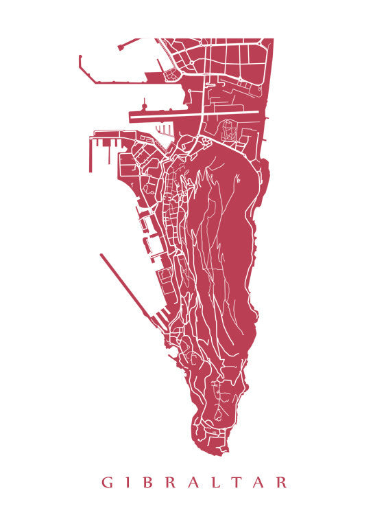 Map of Gibraltar. Example colour shown is Tanzania Garnet.