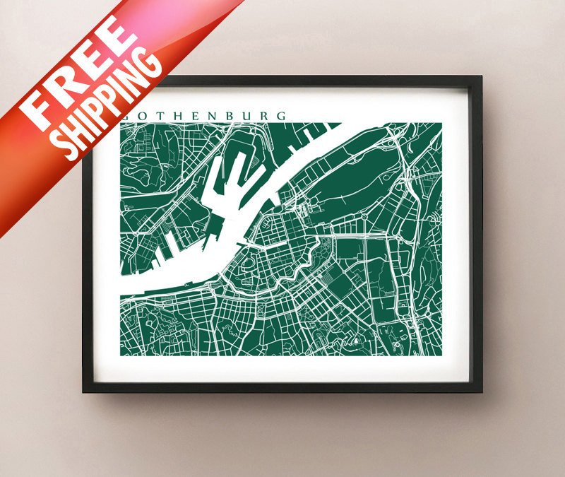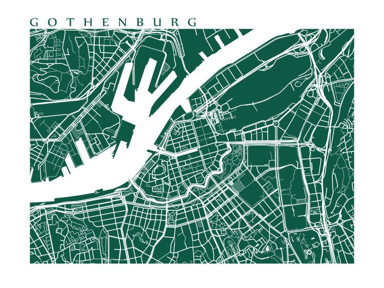 Map of Gothenburg, Sweden. Example colour shown is Spanish Viridian.