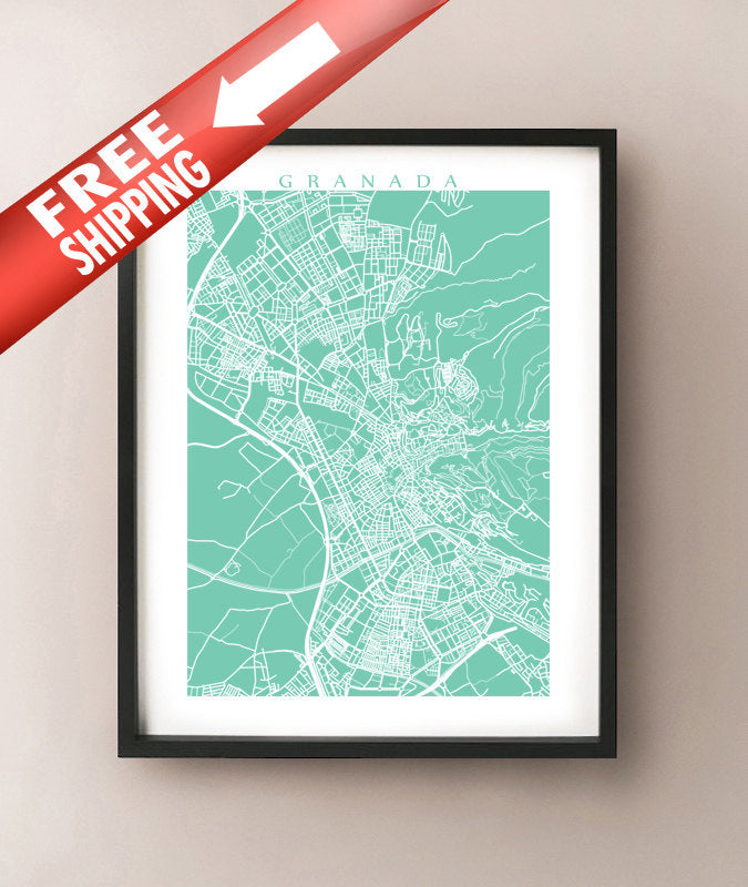 Map of Granada, Spain. Example colour shown is Lake Louise.