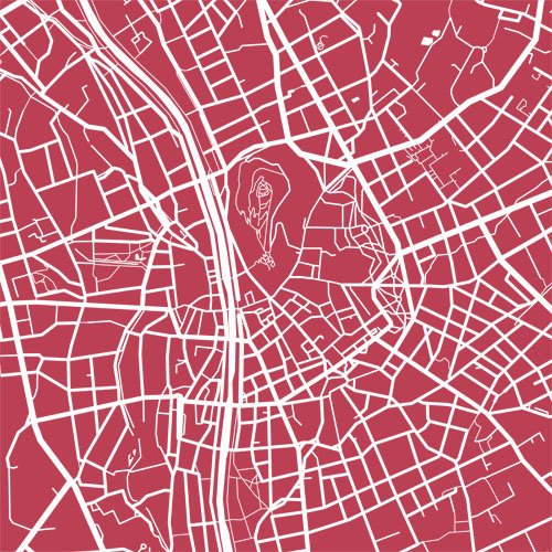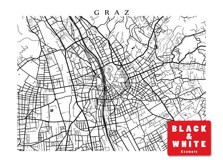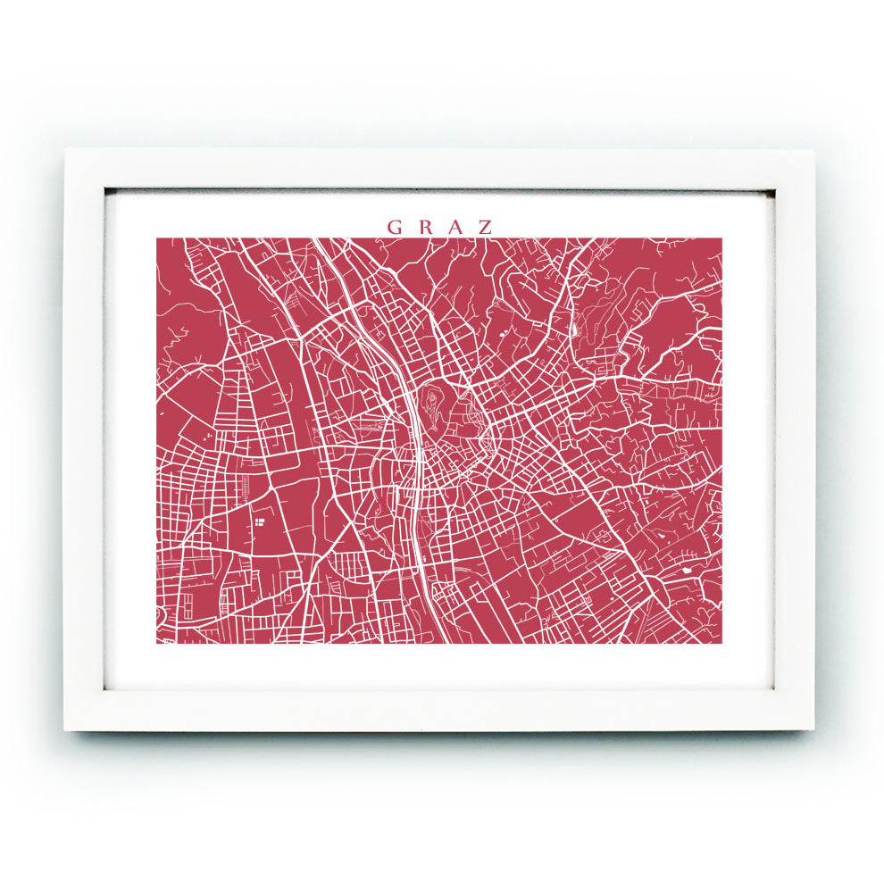 Map of Graz, Austria. Example colour shown is Tanzania Garnet.