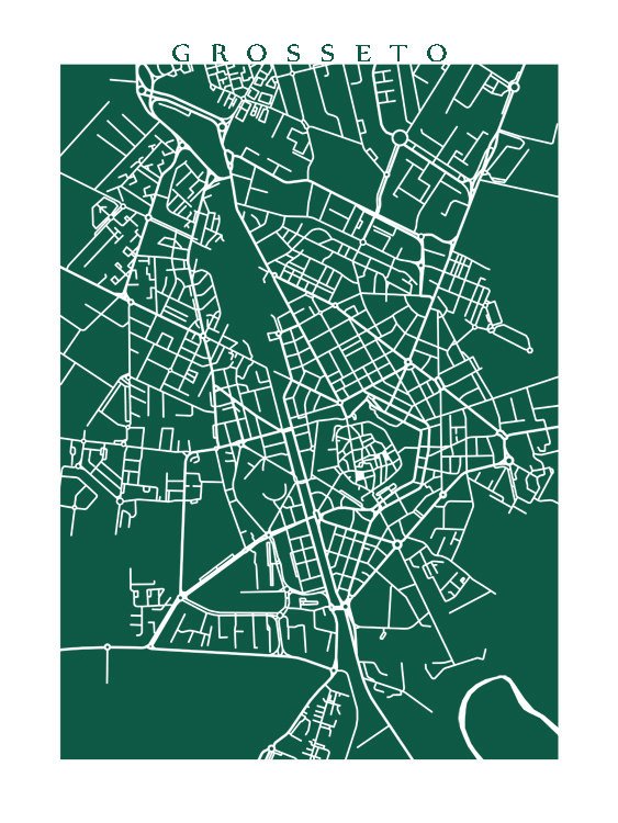Map of Grosseto, Italy. Example colour shown is Spanish Viridan.