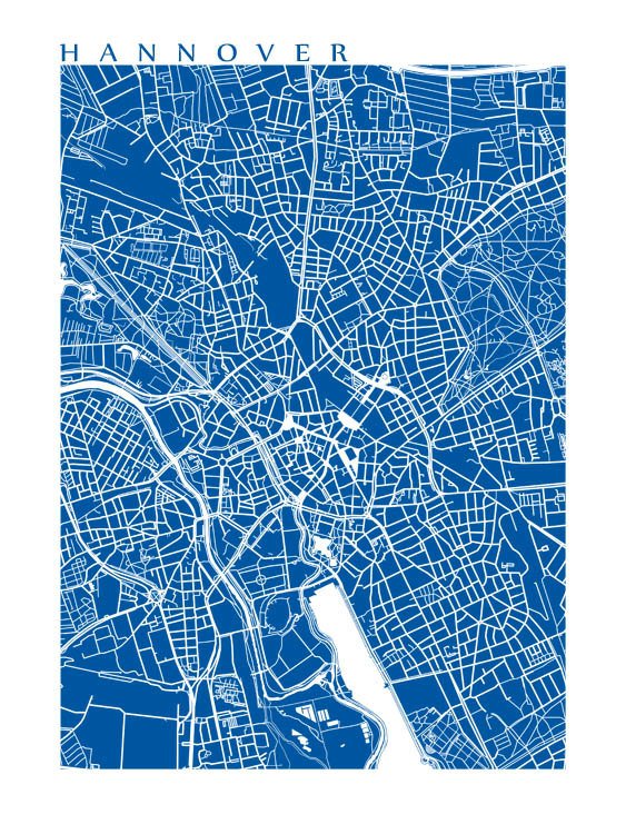 Map of Hannover, Germany. Example colour shown is Default Blue.
