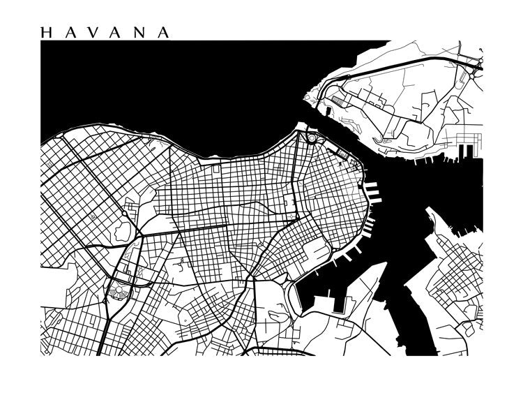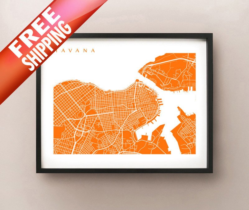 Map of Havana, Cuba. Example colour shown is Florida Orange.