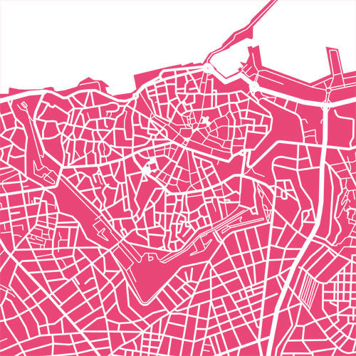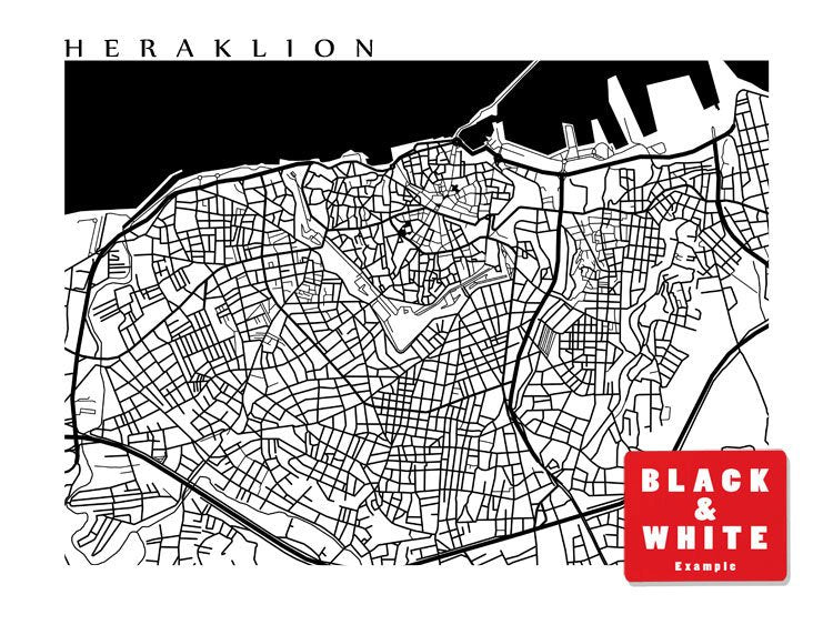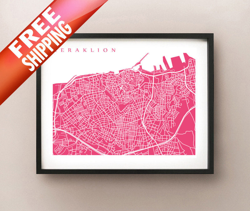 Map of Heraklion, Greece. Example colour shown is Texas Raspberry.