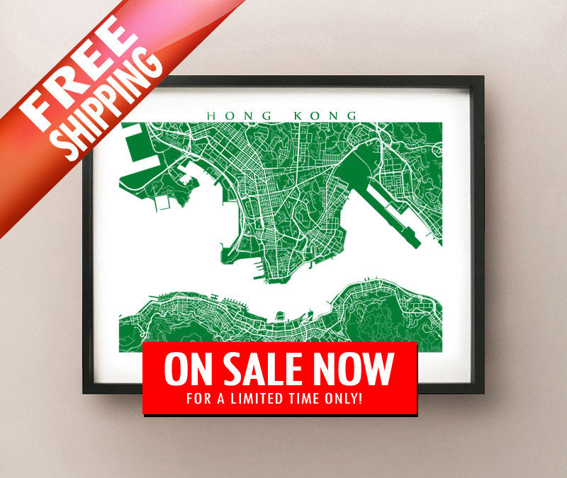 Map of Hong Kong, China. Example colour shown is California Cedar.