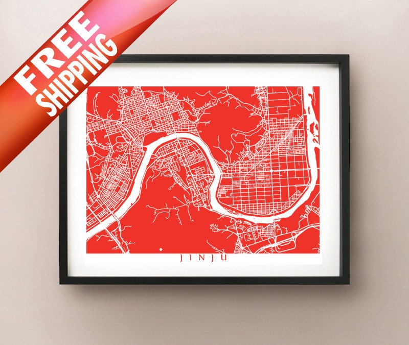 Map of Jinju, South Korea. Example colour shown is Flanders Poppy.