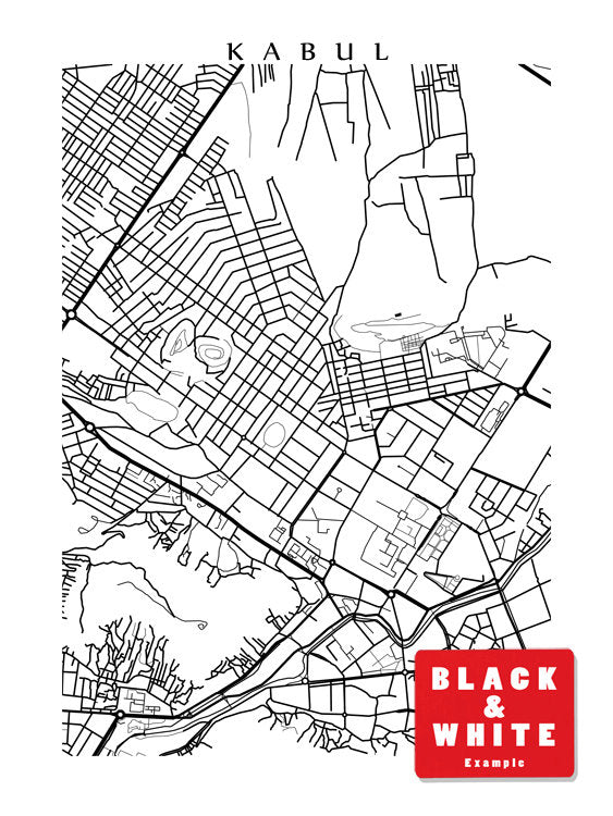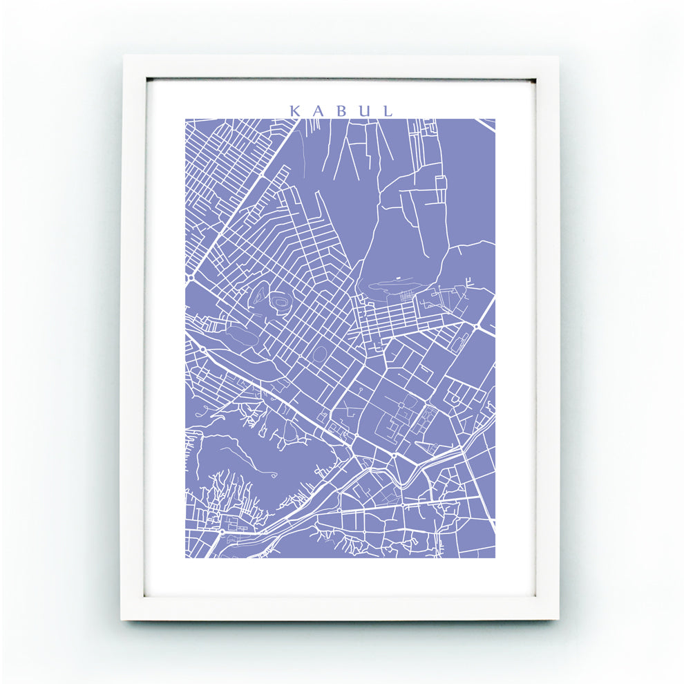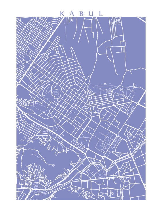 Map of Kabul, Afghanistan. Example colour shown is Mediterranean Salvia.