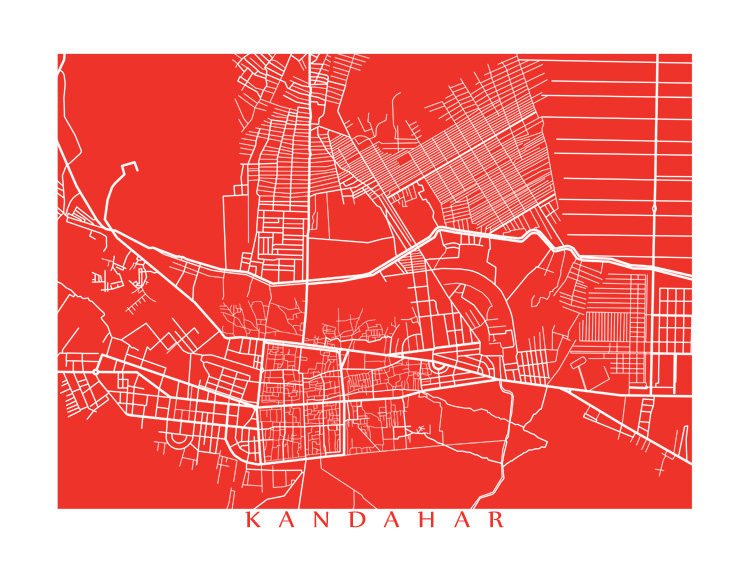 Map of Kandahar, Afghanistan. Example colour shown is Flanders Poppy.