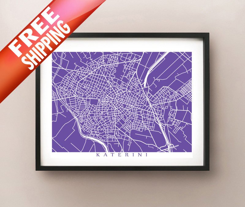 Map of Katerini, Greece. Example color shown is Greek Iris.