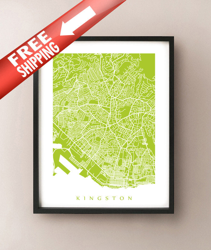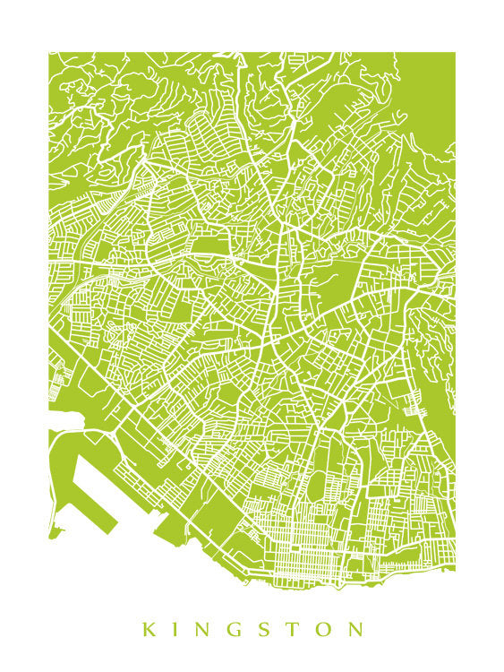 Map of Kingston, Jamaica. Example colour shown is Arctic Moss.