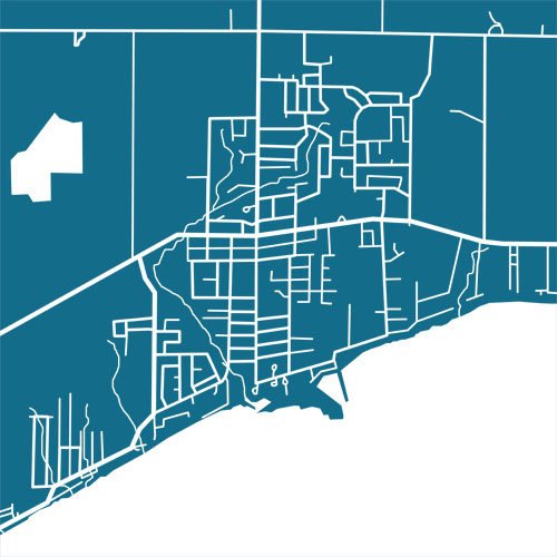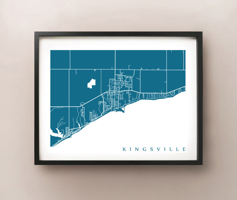 Map of Kingsville, Ontario, Canada. Example colour shown is Indian Peacock.
