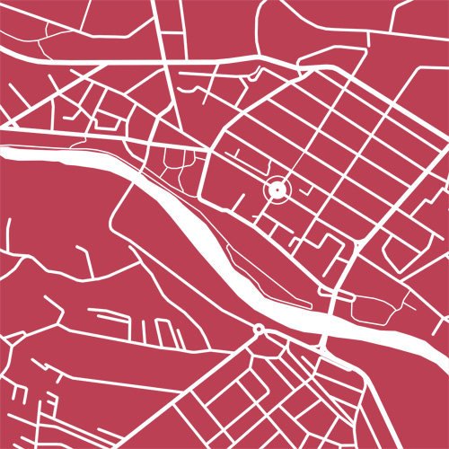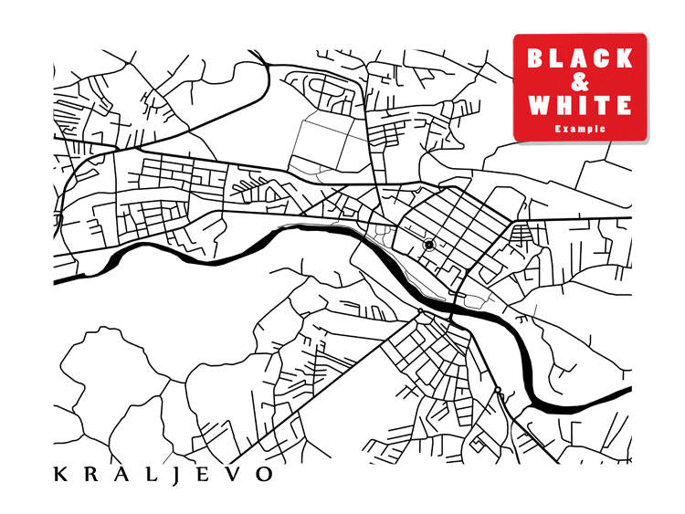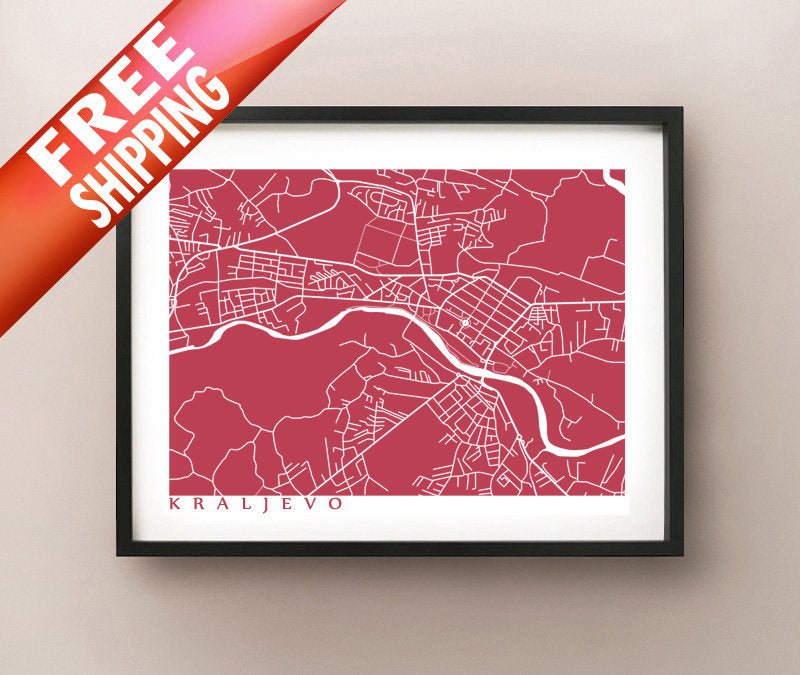 Map of Kraljevo, Serbia. Example colour shown is Tanzania Garnet.