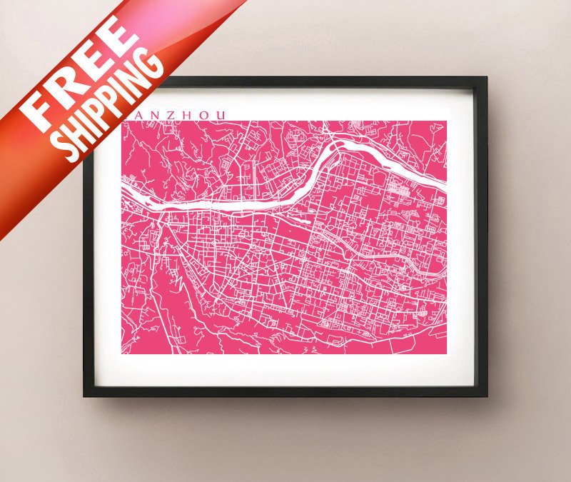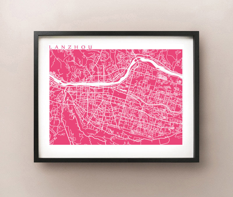 Map of Lanzhou, China. Example colour shown is Texas Raspberry.