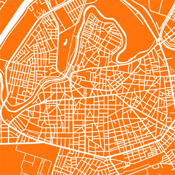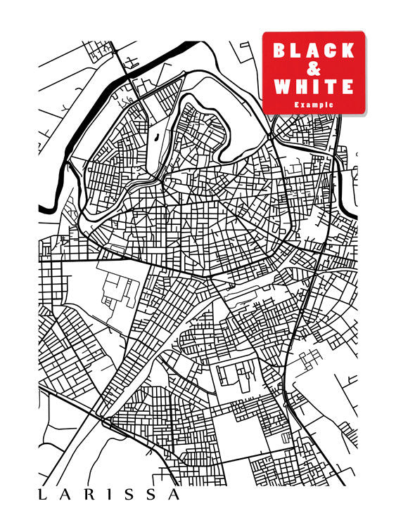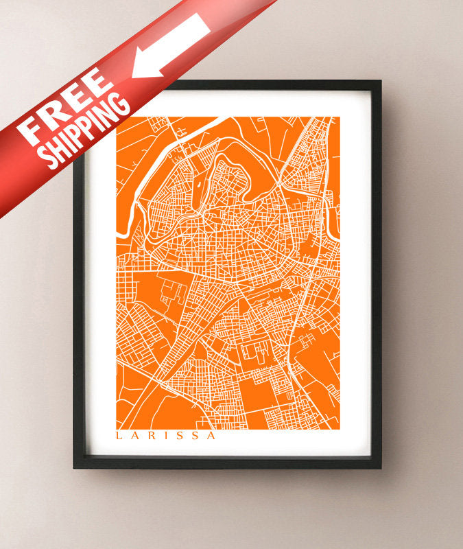 Map of Larissa, Greece. Example colour shown is Florida Orange.
