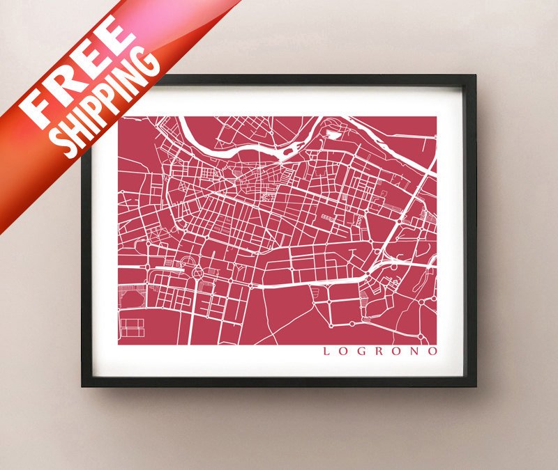 Map of Logrono, Spain. Example colour shown is Tanzania Garnet.