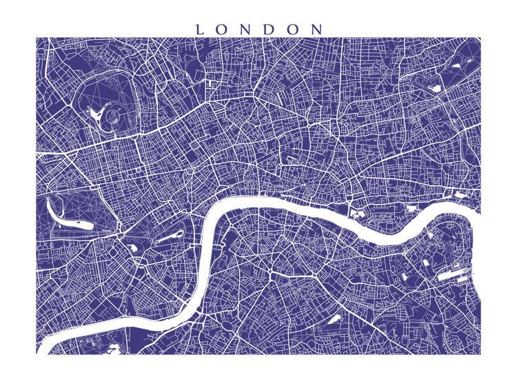 Map of London, England, UK. Example colour shown is Turkish Eggplant.
