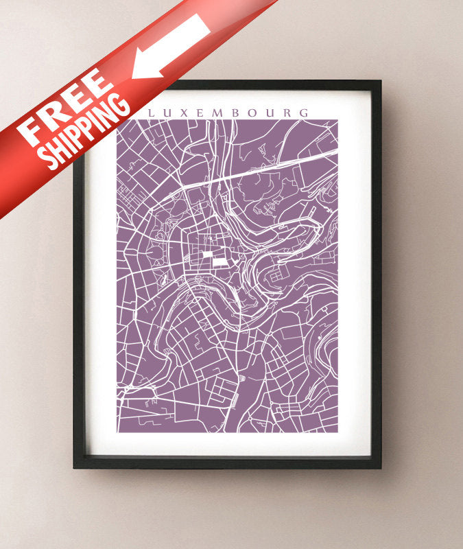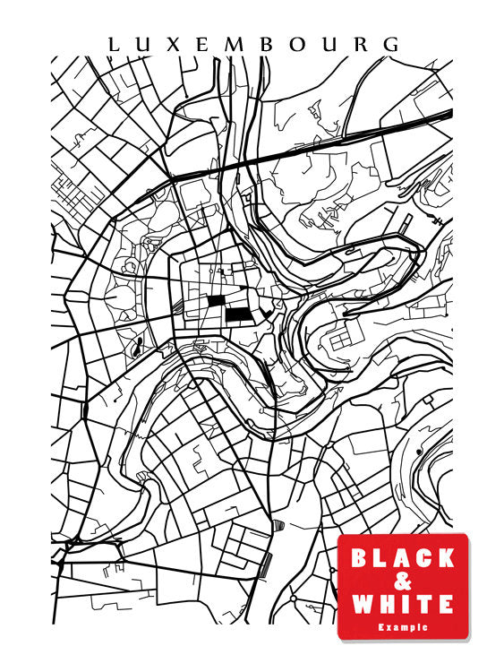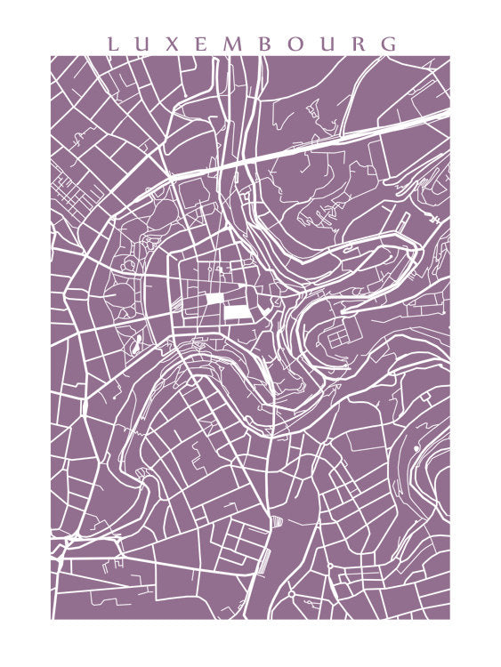 Map of Luxembourg City, Luxembourg. Example colour shown is Americana Sultana.