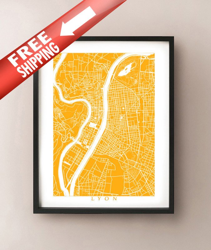 Map of Lyon, France. Example colour shown is Vietnamese Turmeric.
