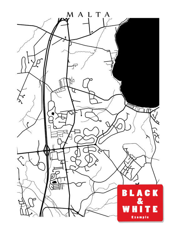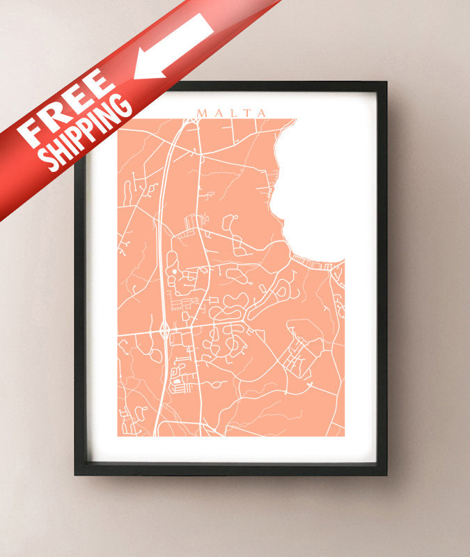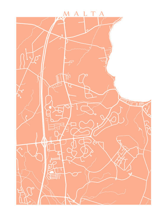 Map of Malta, New York, USA. Example color shown is Serengeti Sunrise.