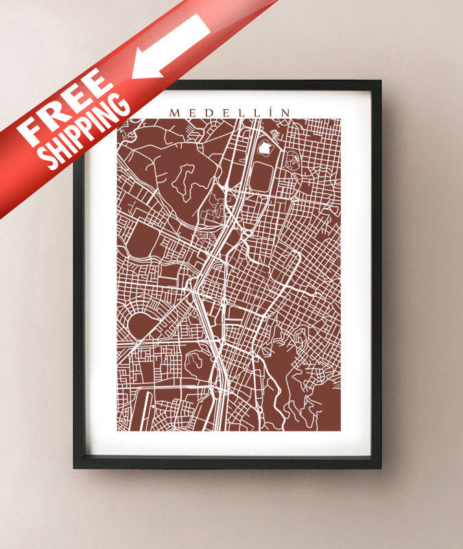 Map of Medellin, Colombia. Example colour shown is Soil of the Nile.