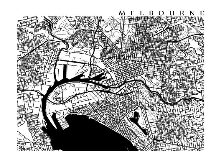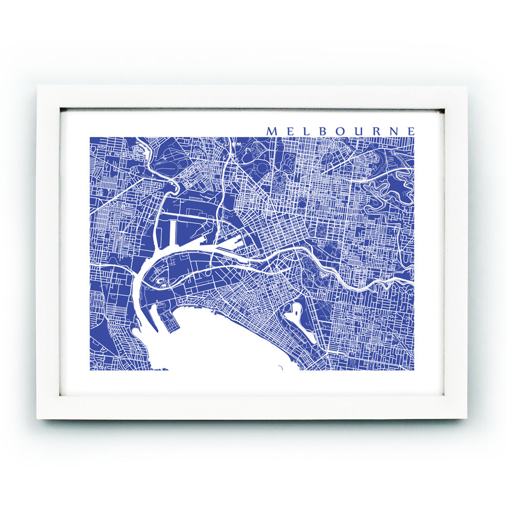 Map of Melbourne, Australia in landscape orientation. Example colour shown is Egyptian Cobalt.