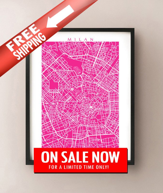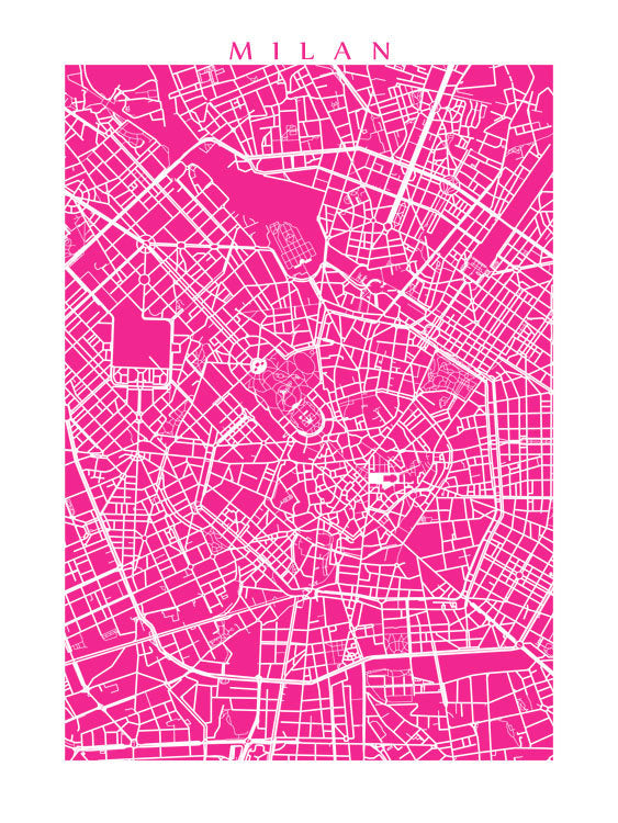 Map of Milan, Italy. Example colour shown is Magenta Italia.