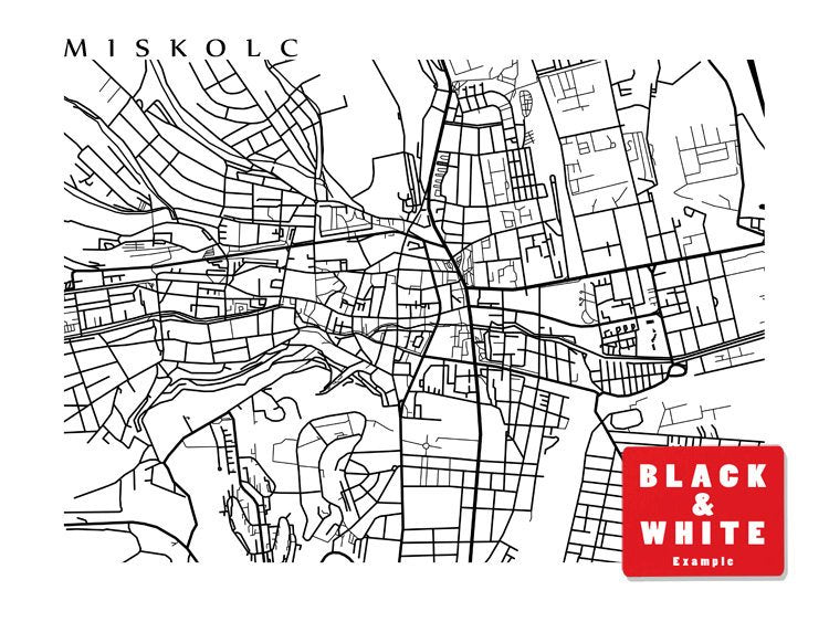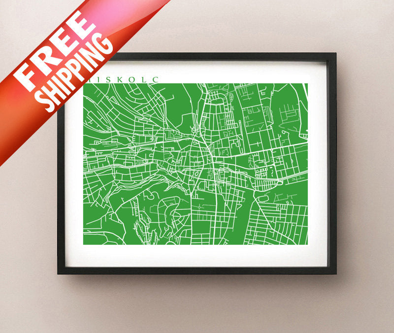 Map of Miskolc, Hungary. Example colour shown is Irish Fields.