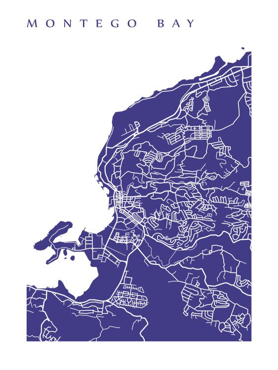 Map of Montego Bay, Jamaica. Example colour shown is Venetian Lapis Lazuli.