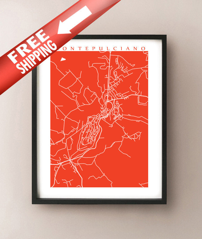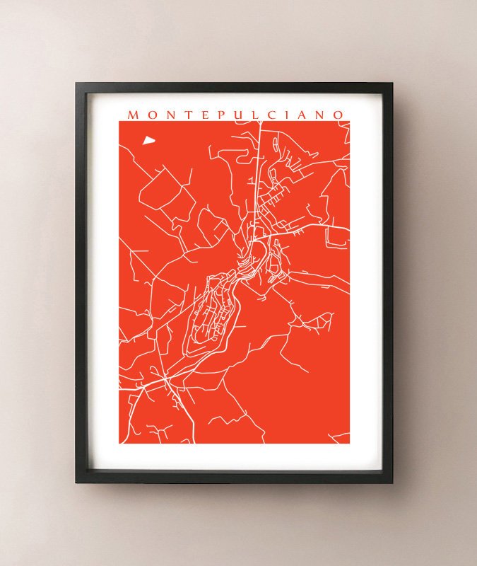 Map of Montepulciano, Italy. Example colour shown is Cannes Red Carpet.