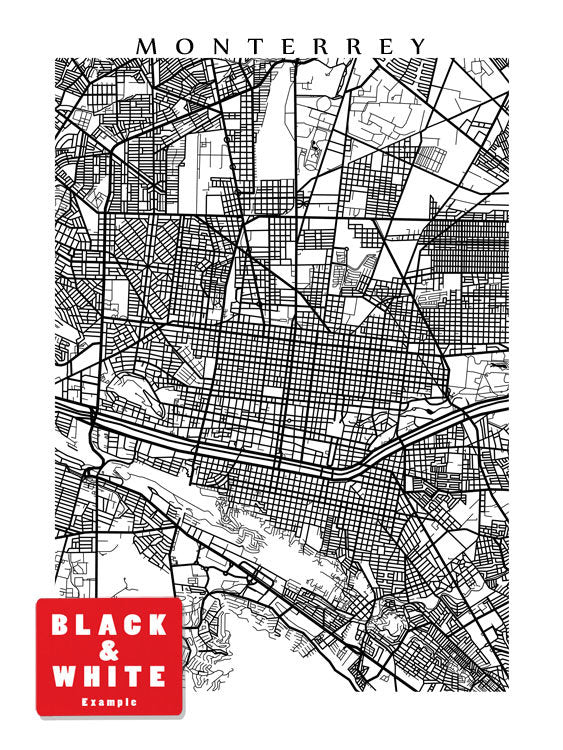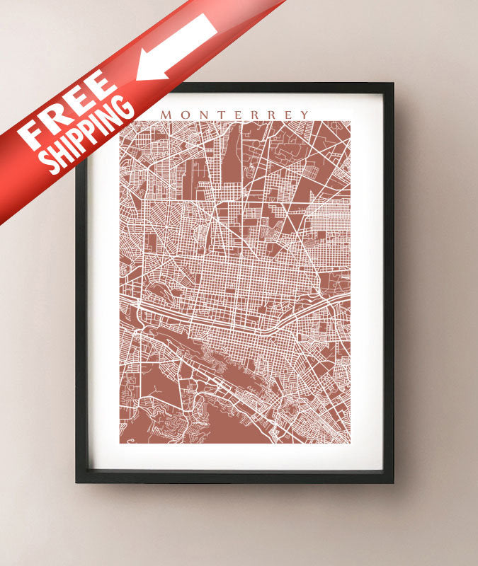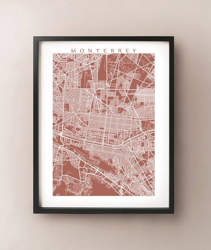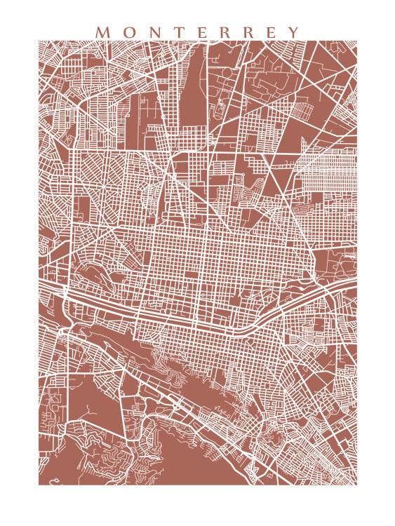 Map of Monterrey, Mexico. Example colour shown is Umbria.