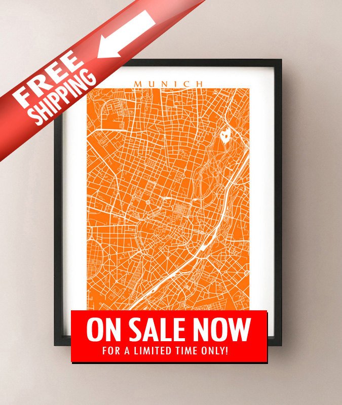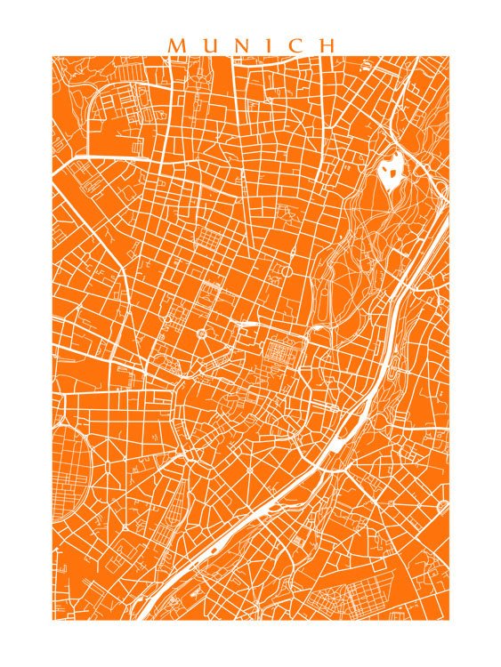 Map of Munich, Germany. Example colour shown is Florida Orange.