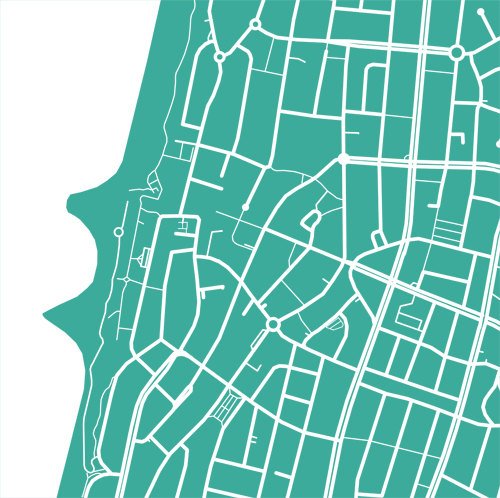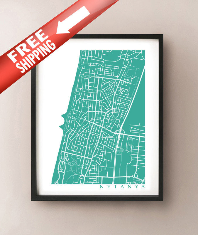 Map of Netanya, Israel. Example colour shown is Muzo Emerald.