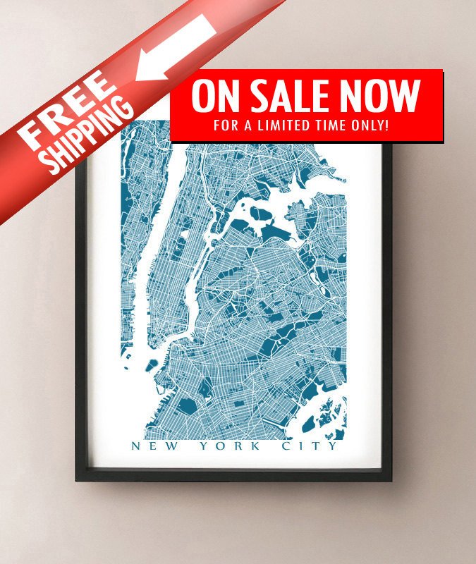 Map of New York City, New York. Example color shown is Indian Peacock.