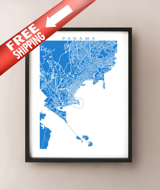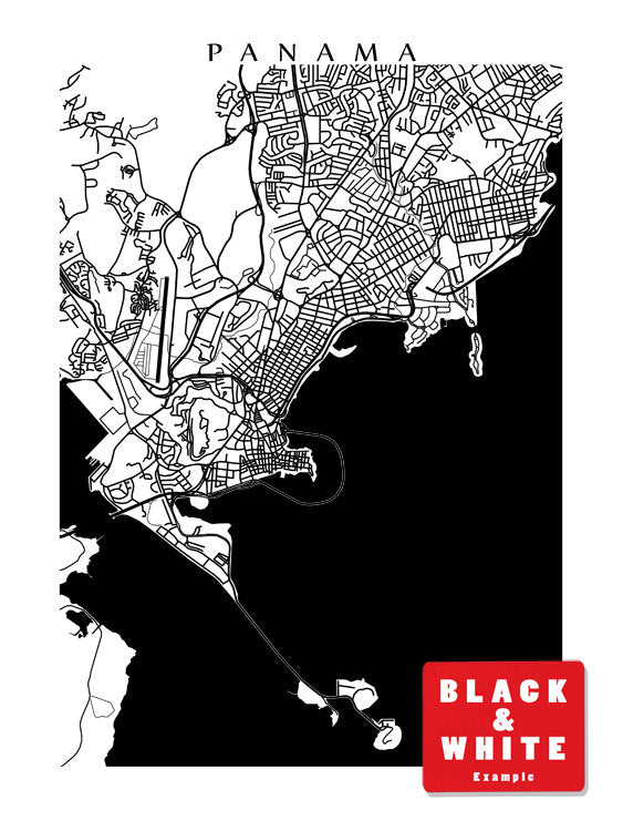 Map of Panama City, Panama. Example colour shown is English Cerulean.