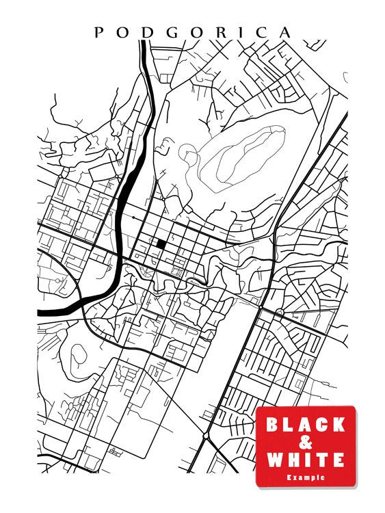 Map of Podgorica, Montenegro. Example colour shown is French Blue.