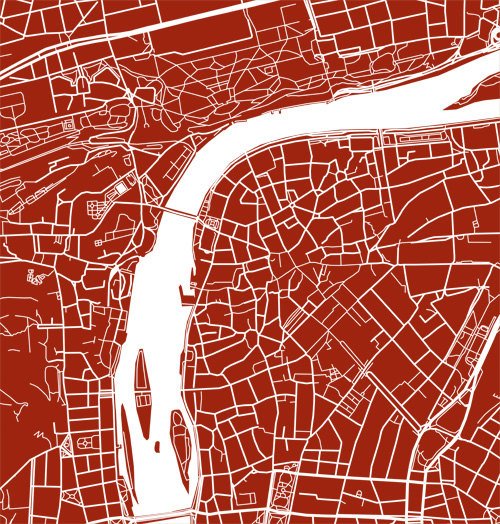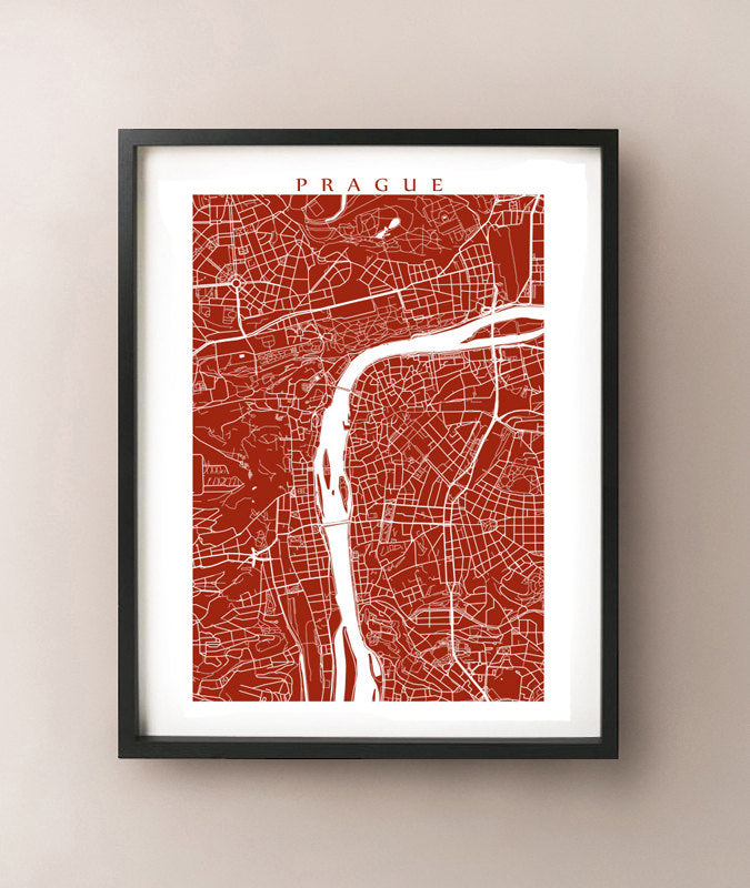 Map of Prague, Czech Republic. Example colour shown is Greek Clay.