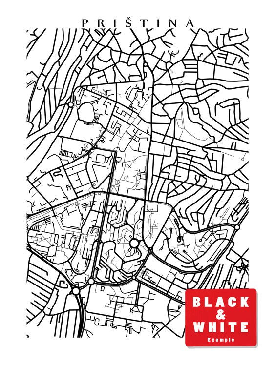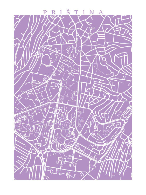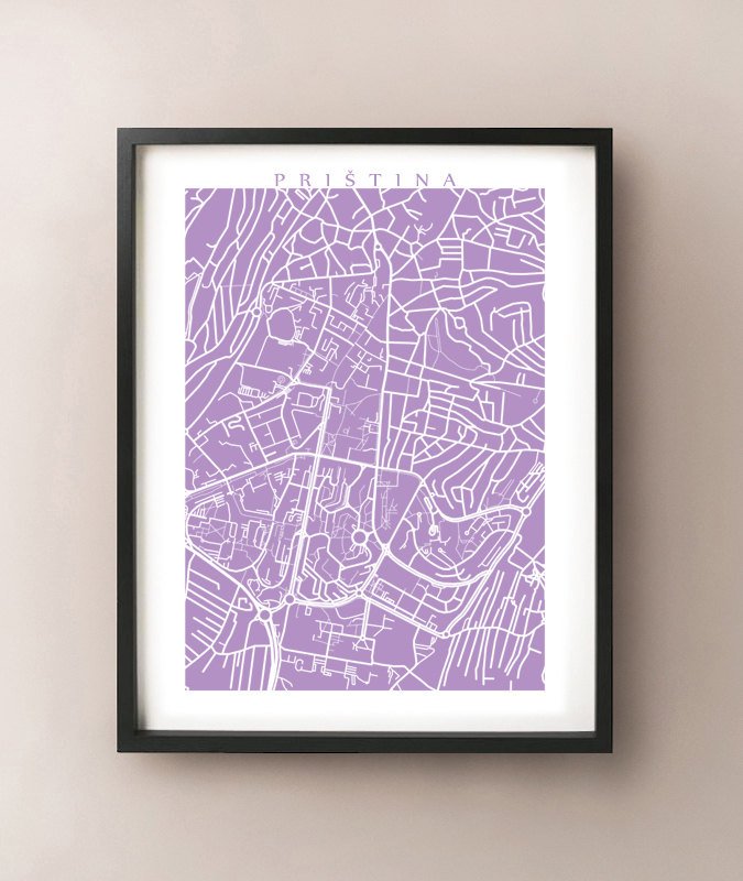 Map of Pristina, Kosovo. Example colour shown is Cape Verde Lavender.