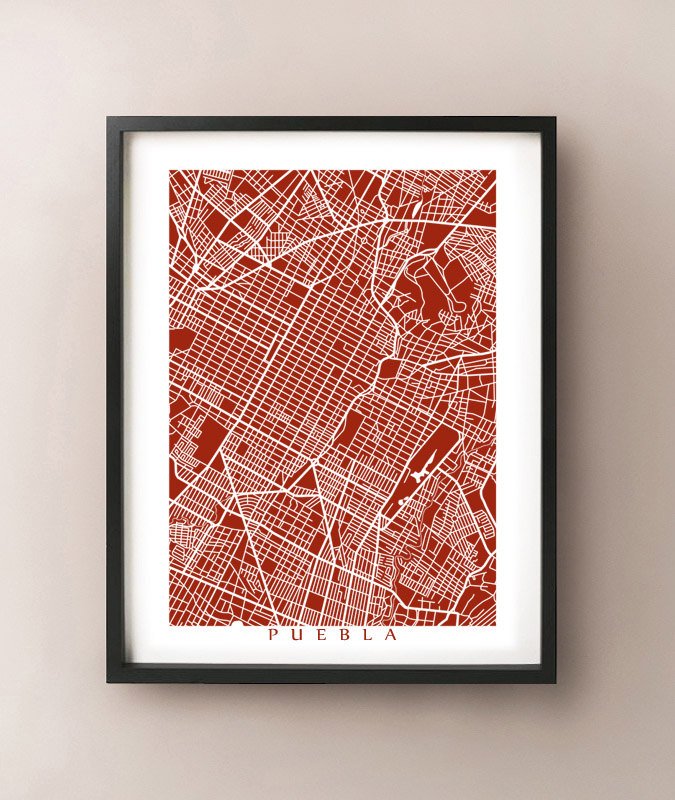 Map of Puebla, Mexico. Example colour shown is Greek Clay.