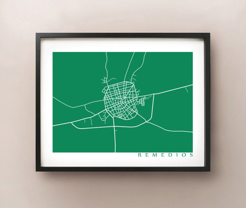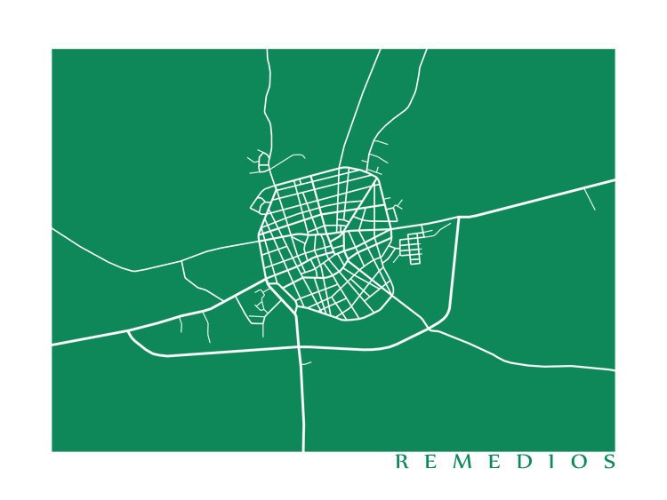 Map of Remedios, Cuba. Example colour shown is Amazon Rainforest.