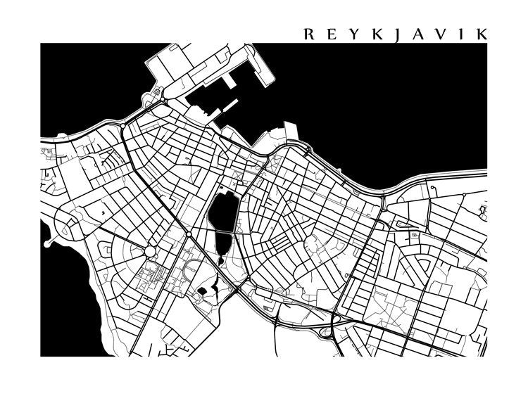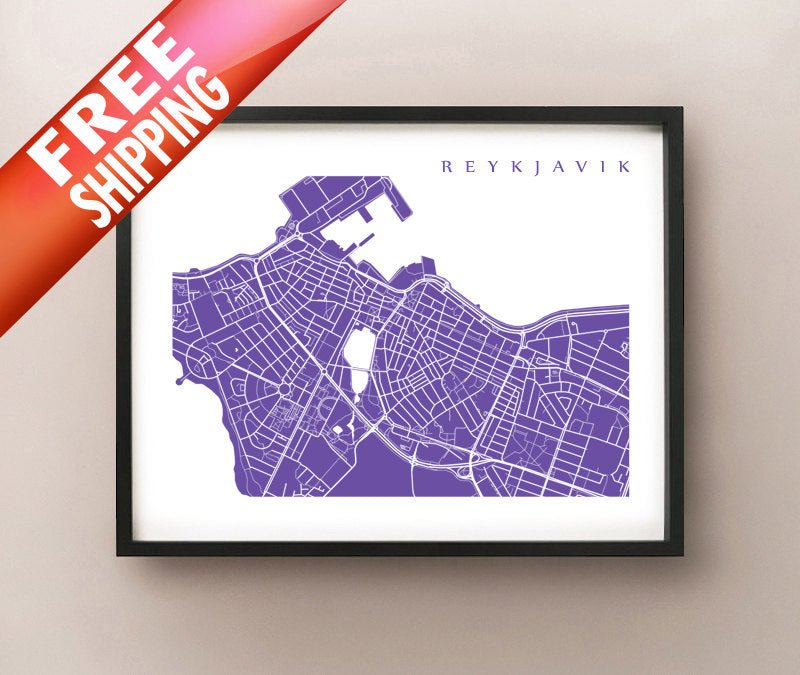 Map of Reykjavik, Iceland. Example colour shown is Greek Iris.