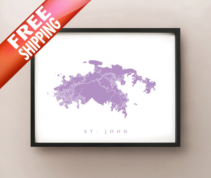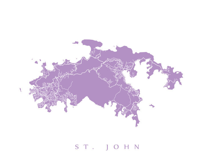 Map of Saint John, US Virgin Islands. Example colour shown is Cape Verde Lavender.