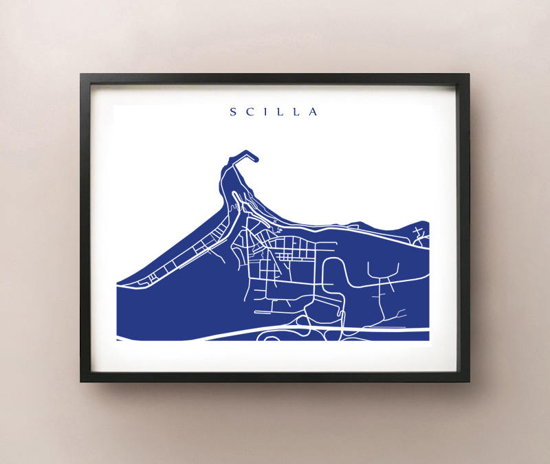Map of Scilla, Italy. Example colour shown is French Blue.