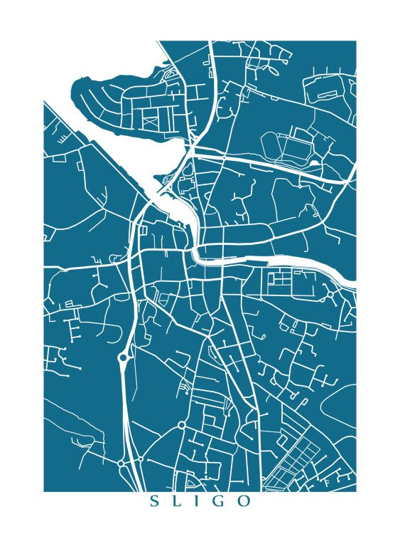 Map of Sligo, Ireland. Example colour shown is Indian Peacock.