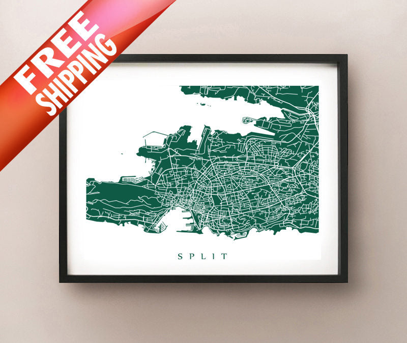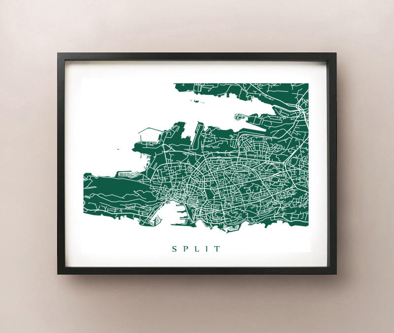 Map of Split, Croatia. Example colour shown is Spanish Viridian.