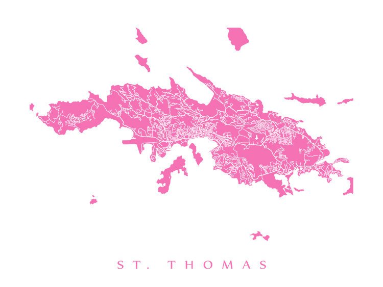 Map of St. Thomas, US Virgin Islands. Example colour shown is Lake Nakuru.